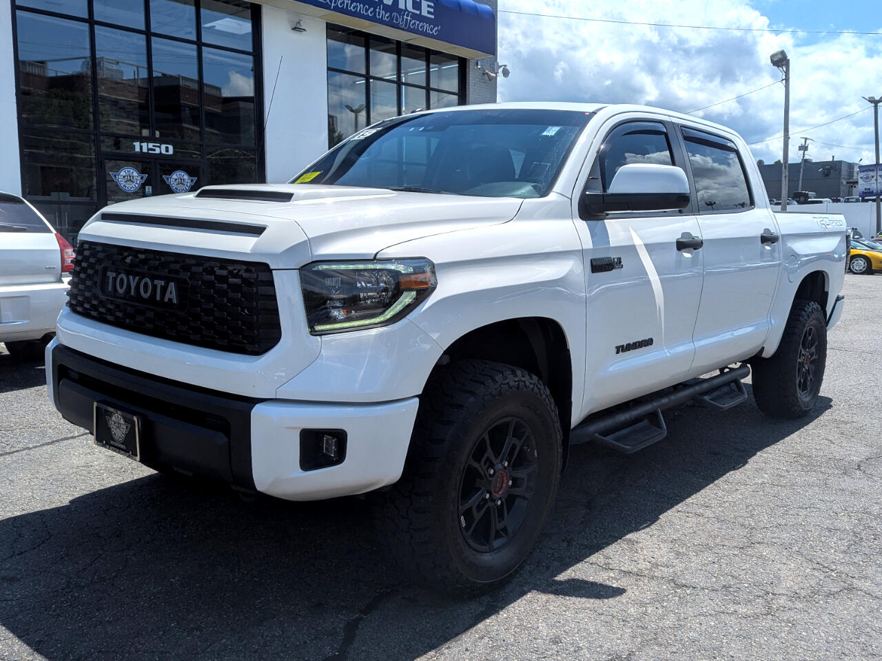 Clean CARFAX. 2019 Toyota Tundra SR5 5.7L V8 Super White 4WD 6-Speed Automatic Electronic i-Force 5.7L V8 DOHC 32V LEV 4WD, Black w/Leather Seat Trim or Leather Seat Trim w/TRD Off-Road Package, 38 Gallon Fuel Tank Capacity, Anti-Theft Immobilizer w/Alarm, Auto-Dimming Rear-View Mirror, Compass, Deck Rail System, HomeLink Universal Transceiver. Welcome to High-line Motor Group! Celebrating 30 years of automotive sales and service to Massachusetts and the USA! We have something for everyone! Whether the discerning enthusiast, or those of you, looking for a GREAT vehicle at a superb price. We take pride in our reputation of well maintained, serviced and specialty vehicles. With thousands of satisfied and repeat customers, you can rest assured, we will provide you with a relaxed and exceptional experience from the moment you contact us. BBB A+ rated and a proud supporter of our local communities. Give us a try, and “experience the difference.” Odometer is 4907 miles below market average! Awards: * 2019 KBB.com Best Resale Value Awards * 2019 KBB.com Brand Image Awards