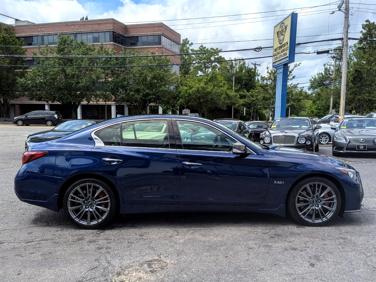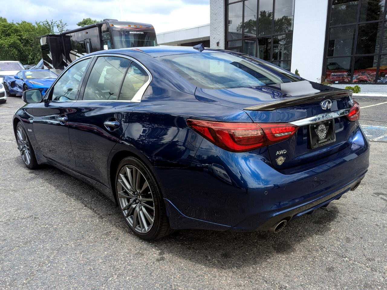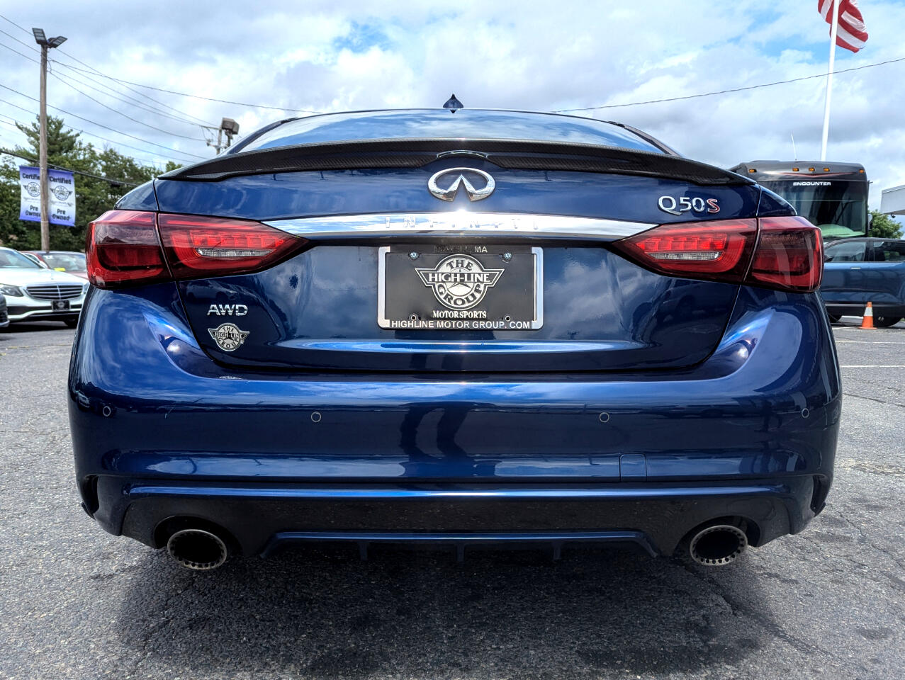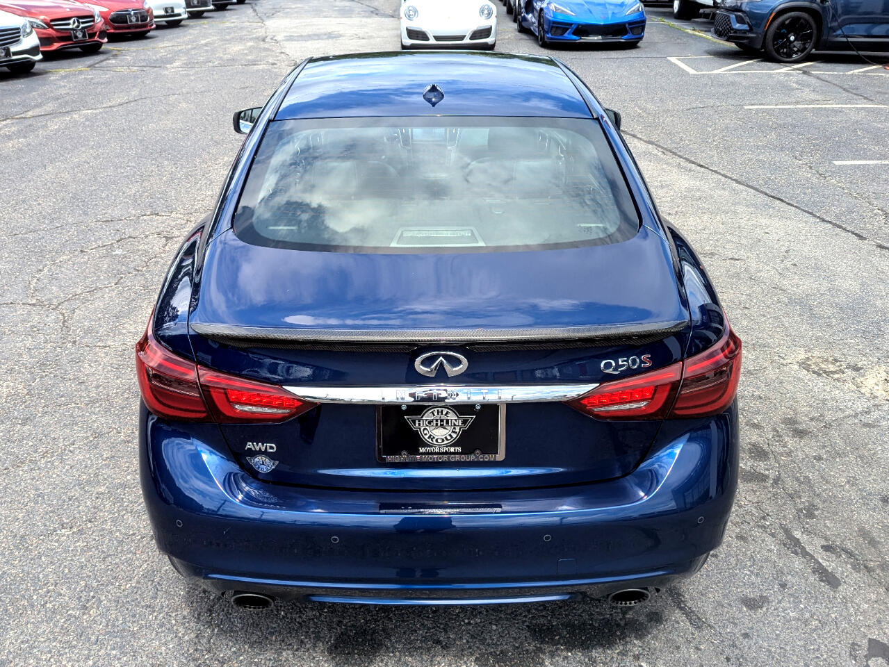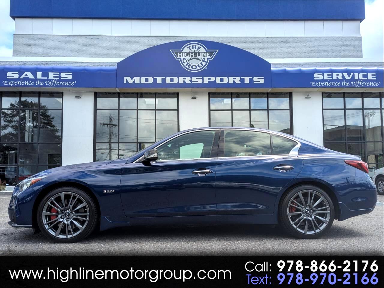 CARFAX One-Owner. Clean CARFAX. 2018 INFINITI Q50 Red Sport 400 Iridium Blue AWD 7-Speed Automatic with Manual Shift 3.0L V6 Adaptive Front Lighting System, Advanced Climate Control System, All Weather Package (L93), All-Season Floor Mats, Auto-Dimming Outside Mirrors w/Reverse Link, Blind-Spot Intervention, BOSE Performance 16-Speakers w/Centerpoint, Carbon Fiber Mirror Covers, Carbon Fiber Package, Carbon Fiber Rear Decklid Spoiler, Cargo Net, Cargo Package (L95), Carpeted Trunk Mat, Direct Adaptive Steering, Distance Control Assist, Dual-Occupant Memory System For Driver's Seat, Eco Pedal, Enhanced Ambient Lighting, First Aid Kit, Front Seat Pre-Crash Seat Belts, High Beam Assist Headlights, Intelligent Cruise Control w/Full Speed Range, Lane Departure Prevention & Warning System, Power Tilt & Telescope Steering Wheel, ProACTIVE Package, Sensory Package (SPORT), Trunk Protector. Welcome to High-line Motor Group! Celebrating 30 years of automotive sales and service to Massachusetts and the USA! We have something for everyone! Whether the discerning enthusiast, or those of you, looking for a GREAT vehicle at a superb price. We take pride in our reputation of well maintained, serviced and specialty vehicles. With thousands of satisfied and repeat customers, you can rest assured, we will provide you with a relaxed and exceptional experience from the moment you contact us. BBB A+ rated and a proud supporter of our local communities. Give us a try, and “experience the difference.” Odometer is 41366 miles below market average! 19/26 City/Highway MPG Awards: * 2018 KBB.com 10 Best Luxury Cars Under $35,000
