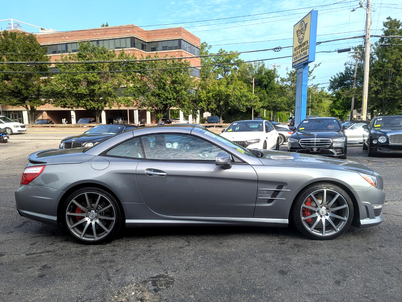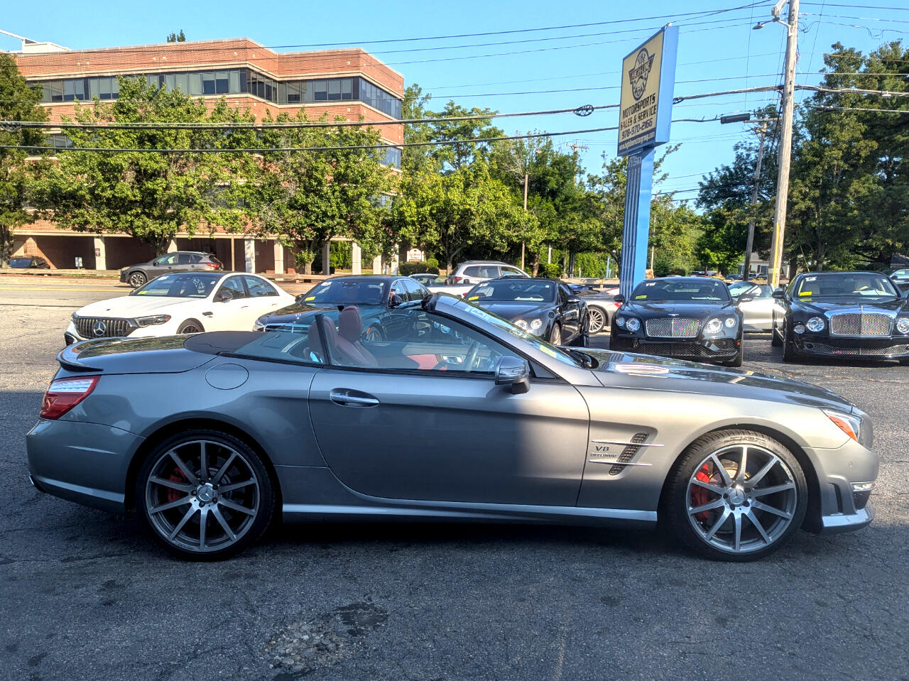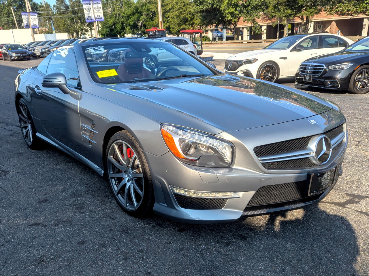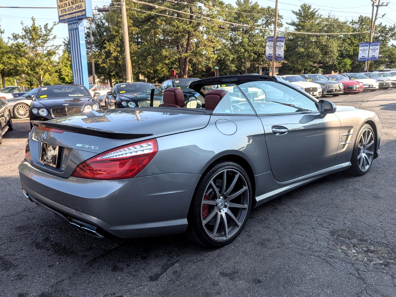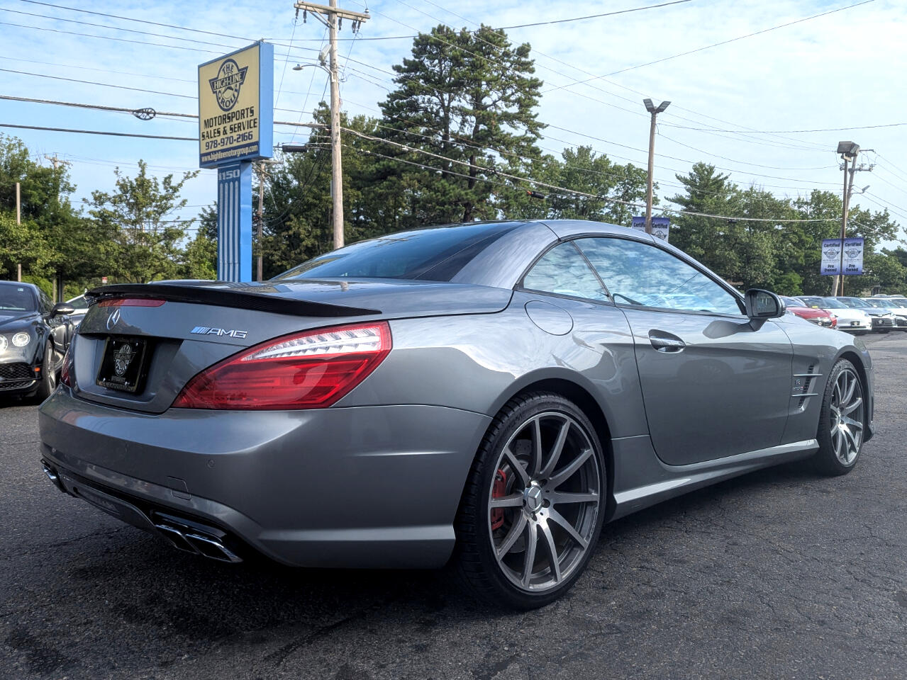 Clean CARFAX. 2013 Mercedes-Benz SL-Class SL 63 AMG® Palladium Silver Metallic RWD 7-Speed Automatic 5.5L V8 Direct-Injection BiTurbo Red/Black w/AMG Premium Leather Upholstery, 19"/20" AMG® 10-Spoke Forged Wheels, Active Multicontour Seats, Active Ventilated Front Seats, AIRSCARF® Ventilated Headrest, AMG® Performance Package, AMG® Performance Steering Wheel, Carbon Fiber Engine Cover, Carbon Fiber Trunklid Spoiler, Comfort Package Code, Hands-Free Access, KEYLESS GO®, Limited-Slip Rear Differential, PARKTRONIC w/Active Parking Assist, Power Trunk Closer, Premium 1 Package, Rear-View Camera, Red Painted Brake Calipers, Top Speed of 186 MPH. Welcome to High-line Motor Group! Celebrating 30 years of automotive sales and service to Massachusetts and the USA! We have something for everyone! Whether the discerning enthusiast, or those of you, looking for a GREAT vehicle at a superb price. We take pride in our reputation of well maintained, serviced and specialty vehicles. With thousands of satisfied and repeat customers, you can rest assured, we will provide you with a relaxed and exceptional experience from the moment you contact us. BBB A+ rated and a proud supporter of our local communities. Give us a try, and “experience the difference.” Awards: * JD Power APEAL Study Reviews: * Well-to-do buyers in the market for a world-class retractable hardtop convertible will find a lot to like about the Mercedes-Benz SL-Class. Whether your preferences run to high-performance, impeccable craftsmanship, cutting-edge in-vehicle tech, or a mixture of all three, the SL-Class will satisfy even the most discerning drivers. Source: KBB.com * Strong yet more efficient V8 engines; luxurious interior; retractable glass-roof hardtop; posh ride quality; iconic heritage. Source: Edmunds