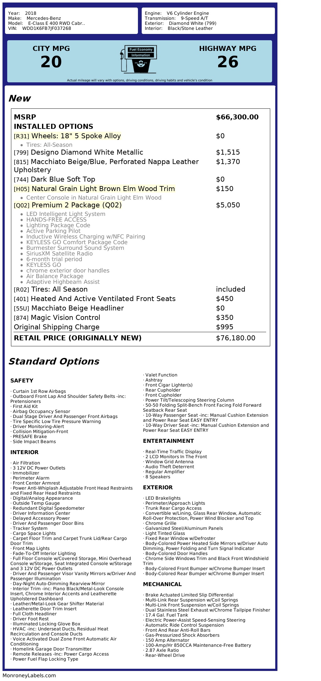 MSRP $76180......Premium 2 pkg....Diamond White over Beige Leather with Dark Blue Soft Top