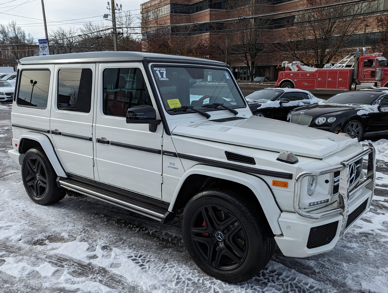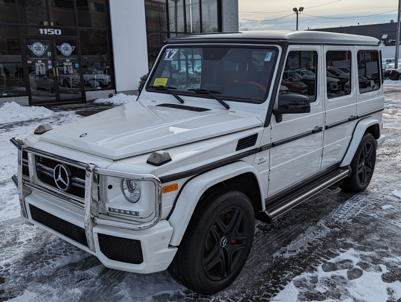 CARFAX One-Owner. Clean CARFAX. 2017 Mercedes-Benz G-Class G 63 AMG® 4MATIC® designo Mystic White Metallic 4MATIC® 7G-TRONIC 7-Speed Automatic 5.5L V8 BiTurbo 2-Tone Nappa Leather Upholstery, AMG® Front Sport Seats, designo® Exclusive Leather Package, Wheels: 20" Black AMG® Cross-Spoke. Welcome to High-line Motor Group! Celebrating 30 years of automotive sales and service to Massachusetts and the USA! We have something for everyone! Whether the discerning enthusiast, or those of you, looking for a GREAT vehicle at a superb price. We take pride in our reputation of well maintained, serviced and specialty vehicles. With thousands of satisfied and repeat customers, you can rest assured, we will provide you with a relaxed and exceptional experience from the moment you contact us. BBB A+ rated and a proud supporter of our local communities. Give us a try, and “experience the difference.” Recent Arrival! Odometer is 22553 miles below market average!