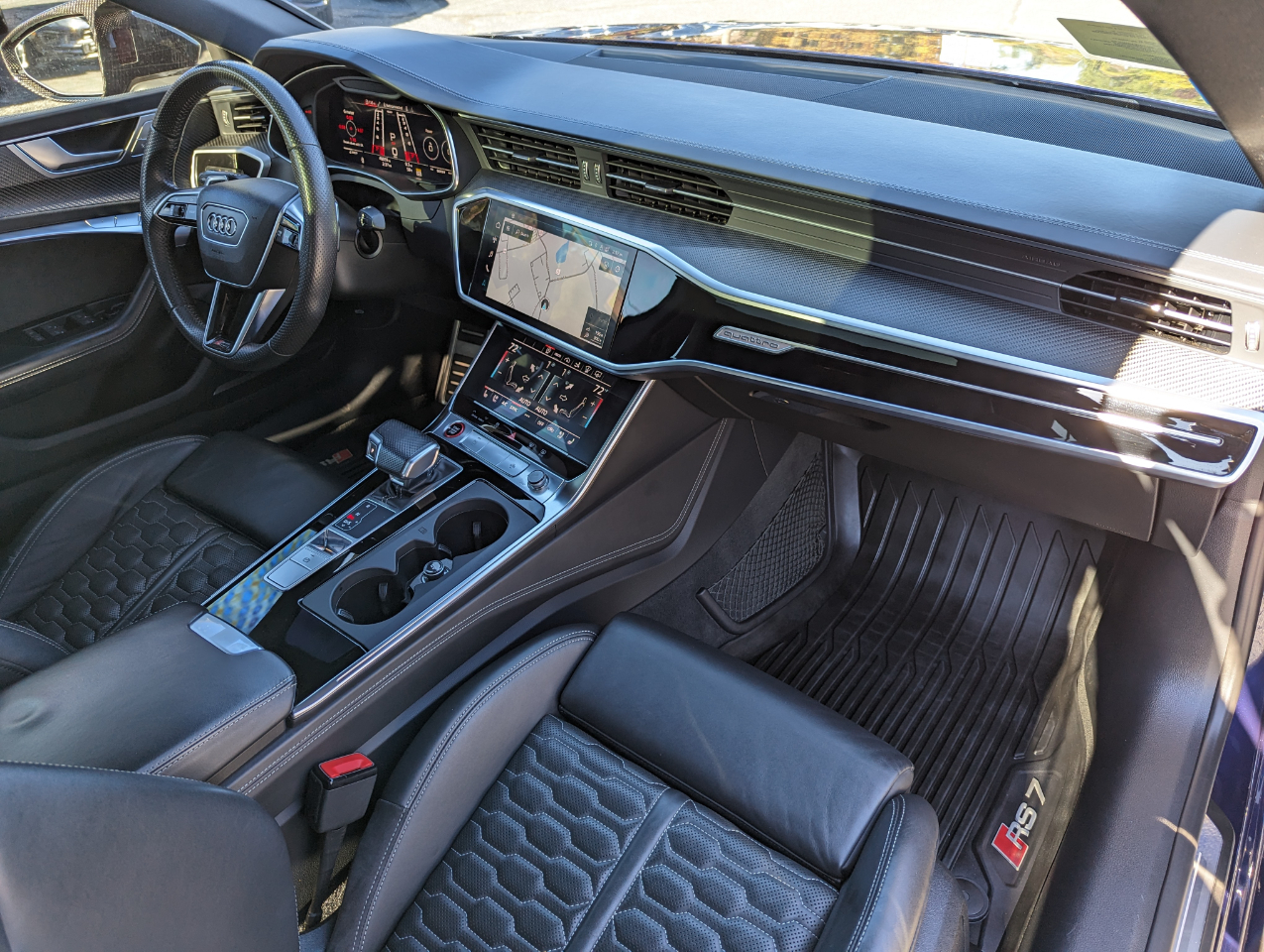 Clean CARFAX. 2021 Audi RS 7 4.0T quattro Navarra Blue Metallic quattro 8-Speed Automatic with Tiptronic 4.0L V8 Turbocharged DOHC 32V LEV3-ULEV125 591hp Audi Active Lane Departure Warning, Audi Adaptive Cruise Assist w/Traffic Jam Assist, Audi Pre Sense Rear, Audi Side Assist w/Rear Cross Traffic Assist, Black Exterior Mirror Housings, Black Optic Exterior Package, Black Optic Package, Driver Assistance Package, Extended Leather Package, Head-Up Display, Heated Rear Seats, Intersection Assist, Power Soft-Closing Doors, RS 7 Executive Package, Traffic Sign Recognition, Wheels: 22" 5-V-Spoke Structured Design Titanium. Welcome to High-line Motor Group! Celebrating 30 years of automotive sales and service to Massachusetts and the USA! We have something for everyone! Whether the discerning enthusiast, or those of you, looking for a GREAT vehicle at a superb price. We take pride in our reputation of well maintained, serviced and specialty vehicles. With thousands of satisfied and repeat customers, you can rest assured, we will provide you with a relaxed and exceptional experience from the moment you contact us. BBB A+ rated and a proud supporter of our local communities. Give us a try, and “experience the difference.” Recent Arrival!