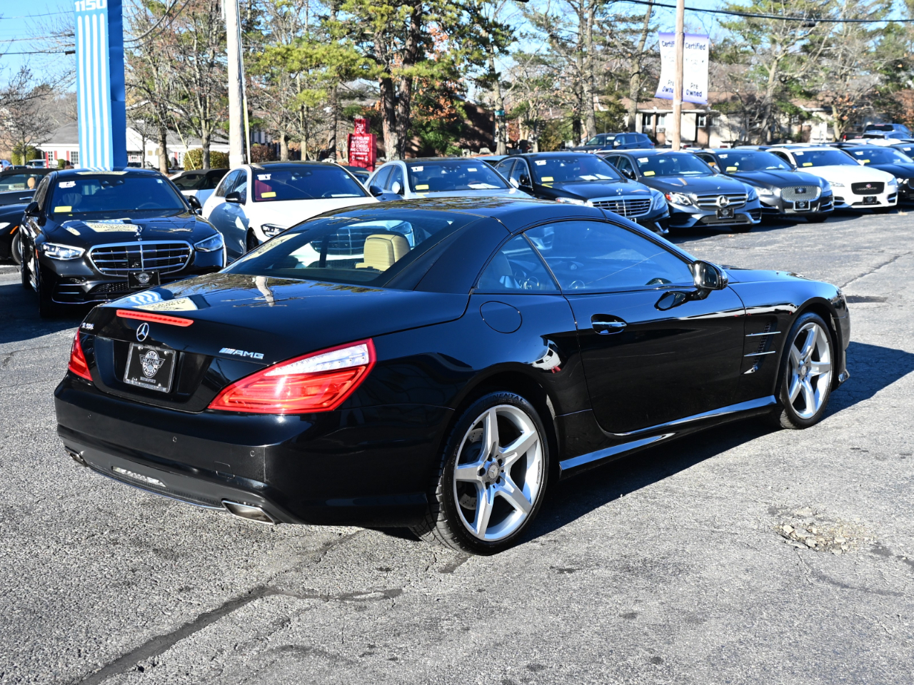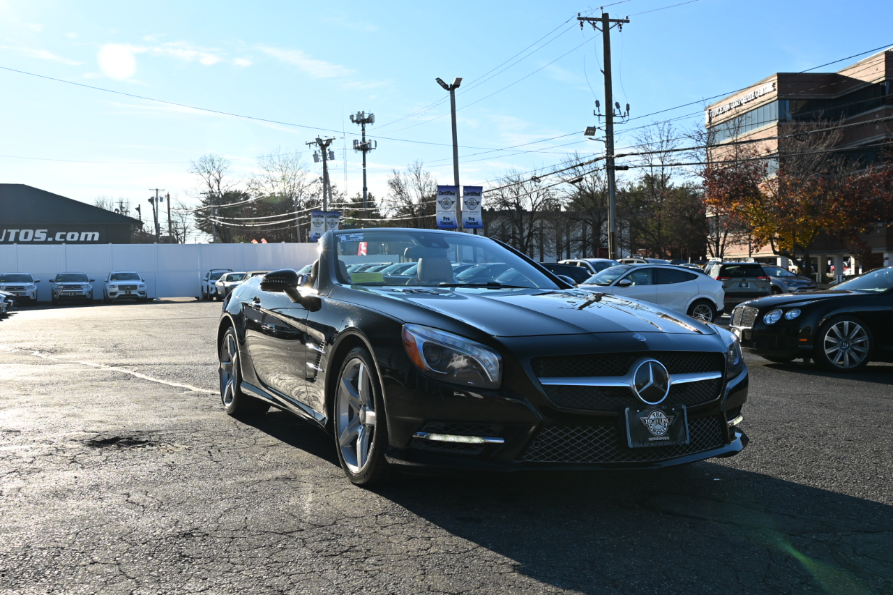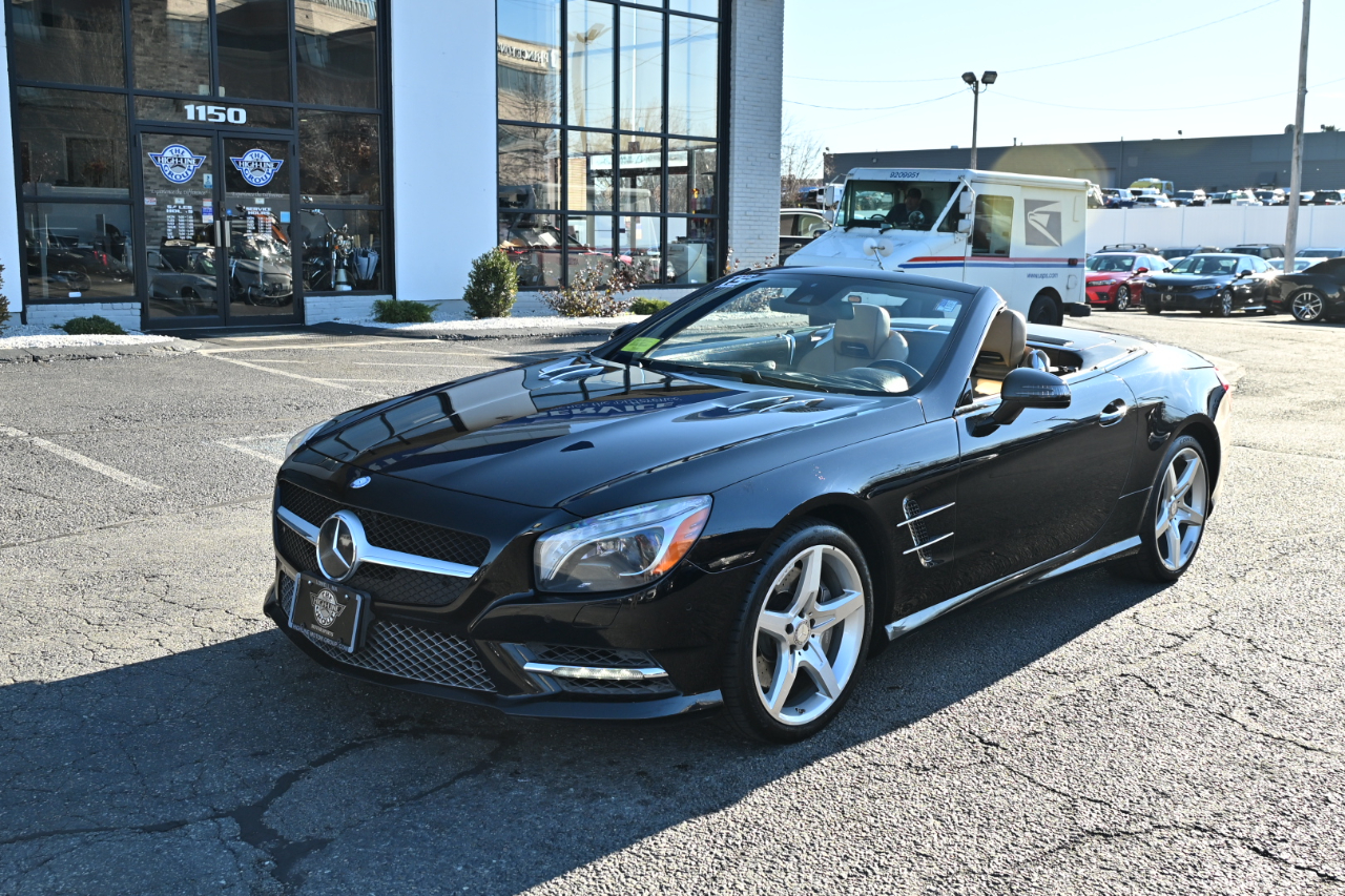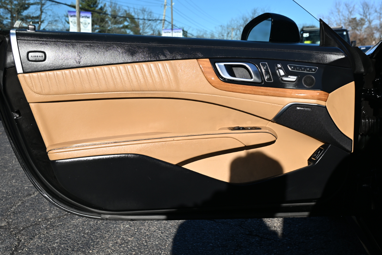 Clean CARFAX. 2015 Mercedes-Benz SL-Class SL 550 Black RWD 7-Speed Automatic Electronic 4.7L V8 BiTurbo designo Sienna Brown/Black Leather Upholstery, 19" x 8.5" Fr x 19" x 9.5" Rr AMG® 5-Spoke Wheels, Active Blind Spot Assist, Active Lane Keeping Assist, designo® Sand Leather Package, designo® Sand Leather Upholstery, DISTRONIC PLUS® w/Pre-Safe Brake, Driver Assistance Package, Sport Brake System, Sport Steering Wheel, Sport Wheel Package. Welcome to High-line Motor Group! Celebrating 30 years of automotive sales and service to Massachusetts and the USA! We have something for everyone! Whether the discerning enthusiast, or those of you, looking for a GREAT vehicle at a superb price. We take pride in our reputation of well maintained, serviced and specialty vehicles. With thousands of satisfied and repeat customers, you can rest assured, we will provide you with a relaxed and exceptional experience from the moment you contact us. BBB A+ rated and a proud supporter of our local communities. Give us a try, and “experience the difference.” Reviews: * Effortless acceleration; impeccably trimmed and relatively spacious interior; retractable glass-roof hardtop; standard features galore; relaxed ride; capable handling. Source: Edmunds