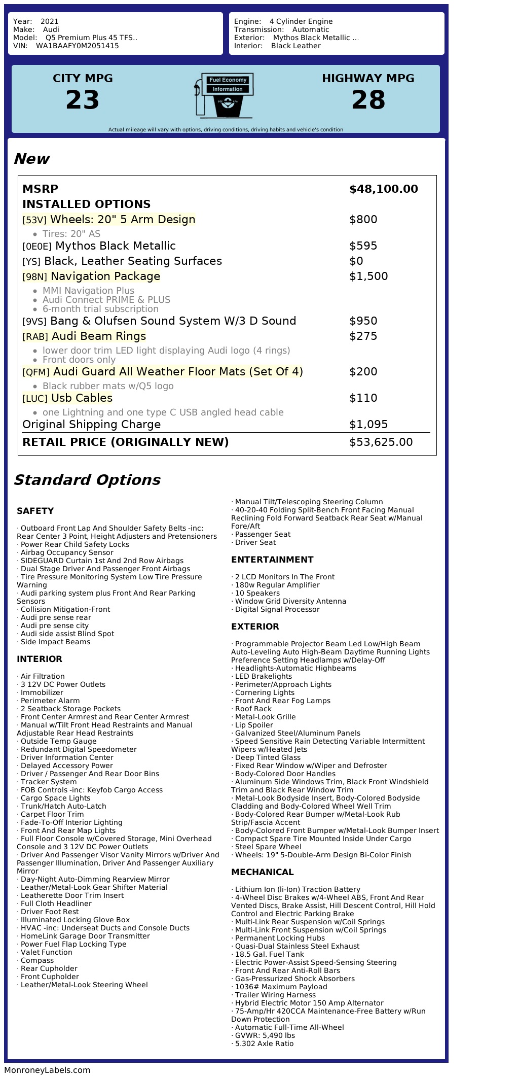 MSRP $53625...Navigation pkg...20" Wheels...Bang and Olufsen Sound...Mythos Black Metallic